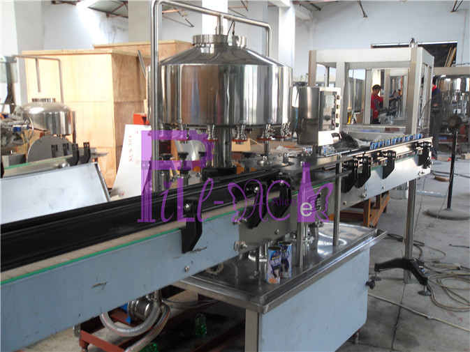 This juice tin can filling machine is developed on the basis of digesting and absorbing advanced technology introducing from abroad and is with international advanced level. It is mainly used for filling non-gas containing drink in tin cans, such as water, juice, milk, tea and so on. The filling way is normal pressure. It adopts the electric magnetic speed control system and the speed can be regulated infinitively as customer requirements within the scope. It adopts the high quality of stainless steel 304 material, meets the requirements of food grade. It is full automatic and advanced in construction, steadily in performance, safe in operation, easy in maintenance, high in production efficiency. The filler is the ideal choice for drink factories of small and middle size.